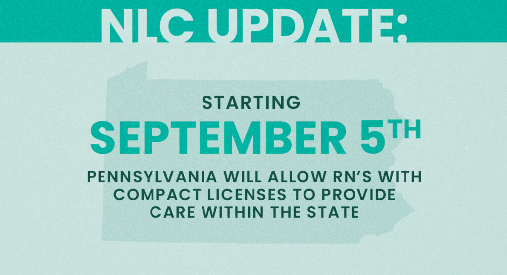 - September 5, 2023: Nurses from other compact states were permitted to practice in Pennsylvania.
